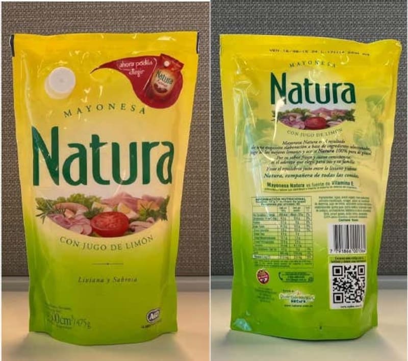 La distinción entre los empaques salió a la luz gracias a la diferencia entre las fotografías frontales de los productos: mientras la mayonesa original de Natura presenta una imagen de una pechuga de pollo con rodajas de limón y tomate en la base del plato, el producto falso mostraba medio tomate, rabanitos, huevos y camarones.