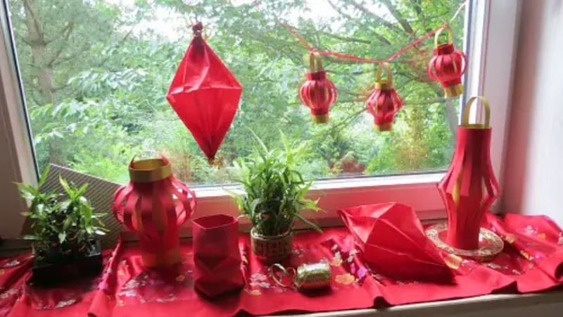 En las casas se decoran con faroles, luces y adornos rojos, que simbolizan la buena suerte y la prosperidad. Además de la decoración exterior, dentro del hogar se llevan a cabo varios rituales para atraer energía positiva, buena fortuna y riqueza.
