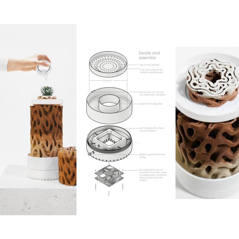 El novedoso climatizador se llama TerraMound. Se trata de un artefacto decorativo y ecológico, porque permite enfriar los ambientes utilizando únicamente la evaporación del agua. Está fabricado en arcilla mediante impresión 3D.