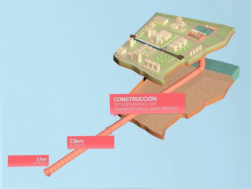Desde ese punto, en marzo una nueva tunelera continuará los cinco kilómetros restantes del primer tramo del Río Subterráneo. Y una vez que concluya esta obra, se construirá un segundo tramo de 10 kilómetros más para completar el proyecto.