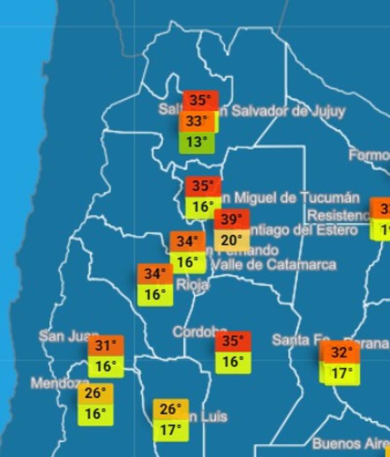 Durante el primer día del fin de semana el calor llegará con fuerza y elevará los termómetros hasta los 39°, marcando un clima casi récord. Las provincias aledañas como Córdoba, San Miguel de Tucumán y Salta también sufrirán climas de 34° y 35°.