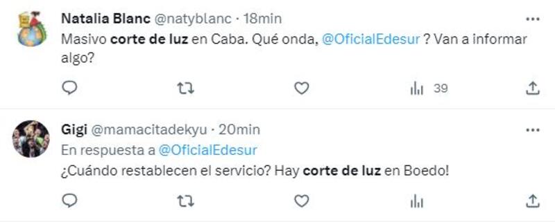 Este sábado pasado el mediodía cientos de usuarios reportaron cortes de luz masivos en varios barrios de la Ciudad de Buenos Aires (CABA). La mayoría de los reclamos correspondían a zonas del sur del distrito dependientes de la concesionaria Edesur.