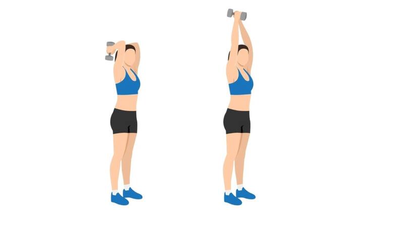 Por otro lado, las tricep extensions se enfocan en los tríceps al elevar una pesa por encima de la cabeza y extender los brazos hacia arriba, eliminando la flacidez en la parte posterior del brazo.