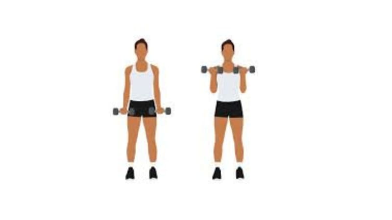 3) Pesas o mancuernas (Bicep Curls y Tricep Extensions):