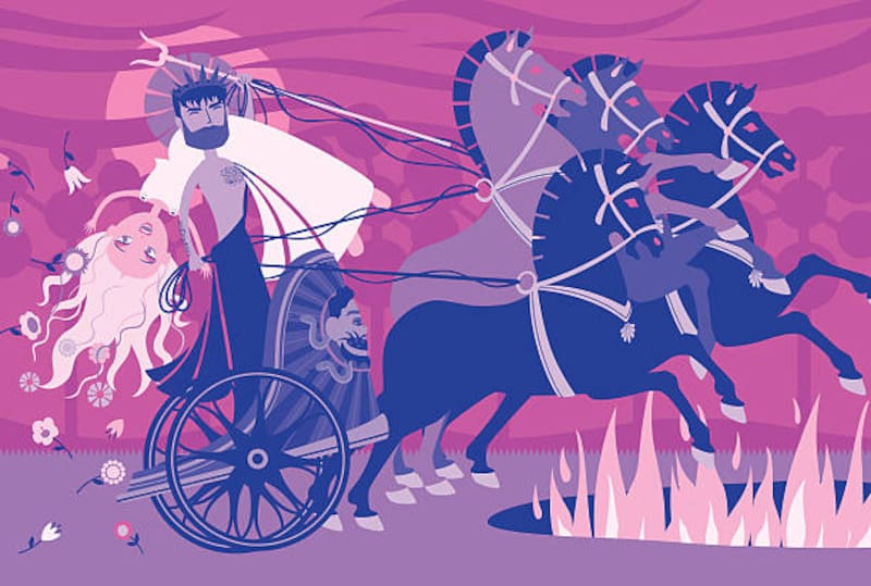La joven Perséfone, también conocida como Kore, es hija de Zeus, y se encuentra disfrutando de un día de campo cuando es arrastrada hacia el inframundo por su tío, Hades, para convertirla en su esposa y reina de los muertos.