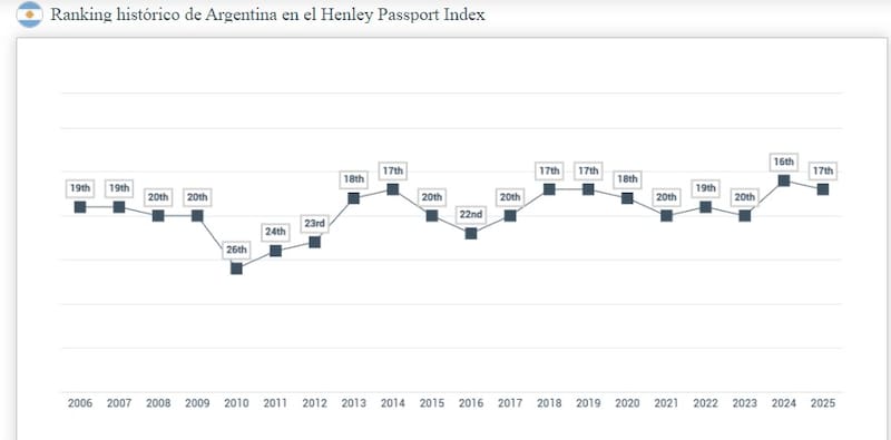 El pasaporte argentino, por su parte, pierde un lugar y cae a la 17° posición, con acceso a 172 destinos sin visado previo.