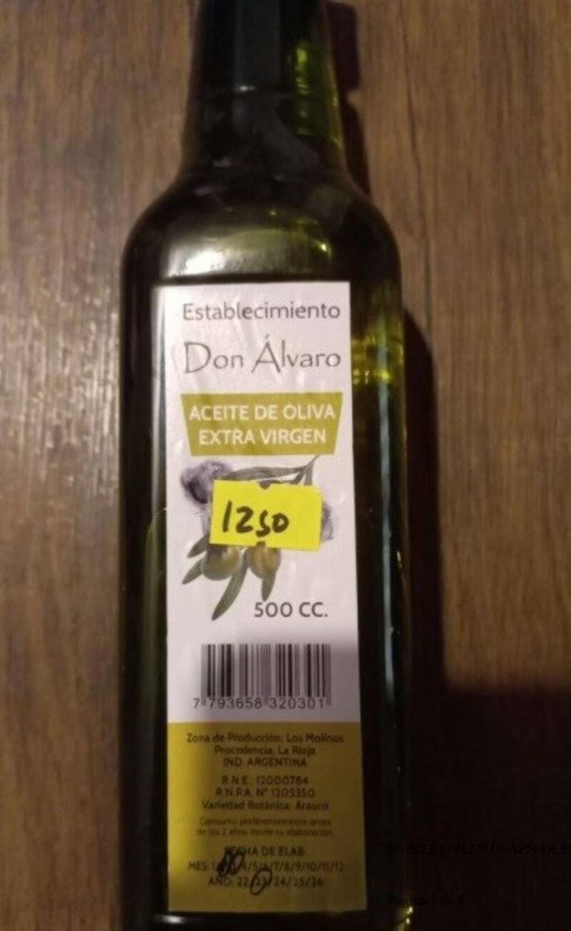 Por un lado, la entidad dependiente del Ministerio de Salud penalizó al "Aceite de oliva extra virgen, marca establecimiento Don Álvaro, proveniente de La Rioja".