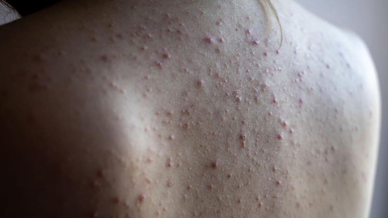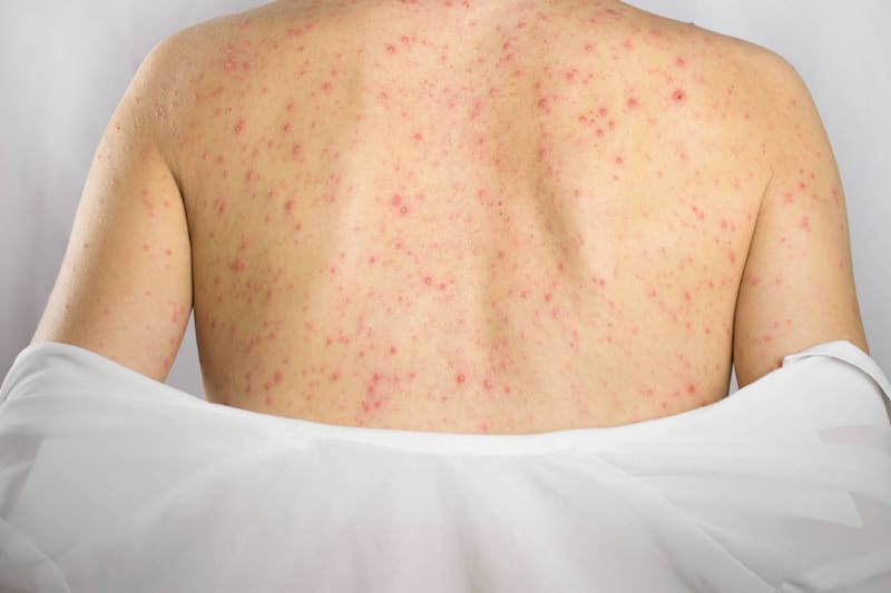 Una afección similar al acné corporal es la foliculitis, una inflamación alrededor de los folículos pilosos que puede confundirse con el acné.