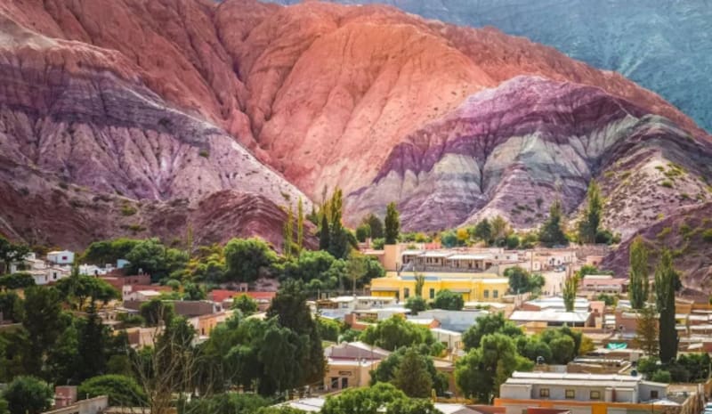 Purmamarca es, sin dudas, uno de los pueblitos de montaña más lindos y pintorescos de Argentina. Ubicado en la provincia de Jujuy, a los pies del imponente Cerro de los Siete Colores, este destino cautiva con su belleza natural, su cultura ancestral y su aire de tranquilidad. Tiene un céntrico muy típico con casas coloniales que está rodeado por montañas y quebradas que ofrecen vistas espectaculares. Además es un lugar donde la cultura andina está presente en cada rincón: en sus ferias artesanales, en la música folclórica y en la gastronomía con sabores típicos como las empanadas de quinoa, las humitas y el locro.