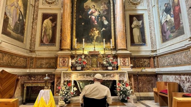 "Ante la imagen de Nuestra Señora de los Peregrinos, (el obispo de Roma) saludó a los frailes, monjas y peregrinos presentes y luego regresó al Vaticano", informaron.