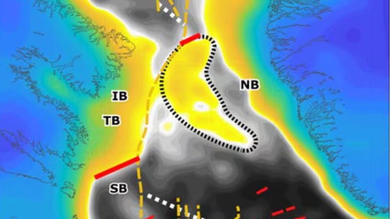 Gracias a la combinación de datos de gravedad y reflexiones sísmicas se identificó una corteza continental de extraordinario grosor, que varía entre 19 y 24 kilómetros, aislada del margen occidental de Groenlandia por una extensión este-oeste previamente desconocida.