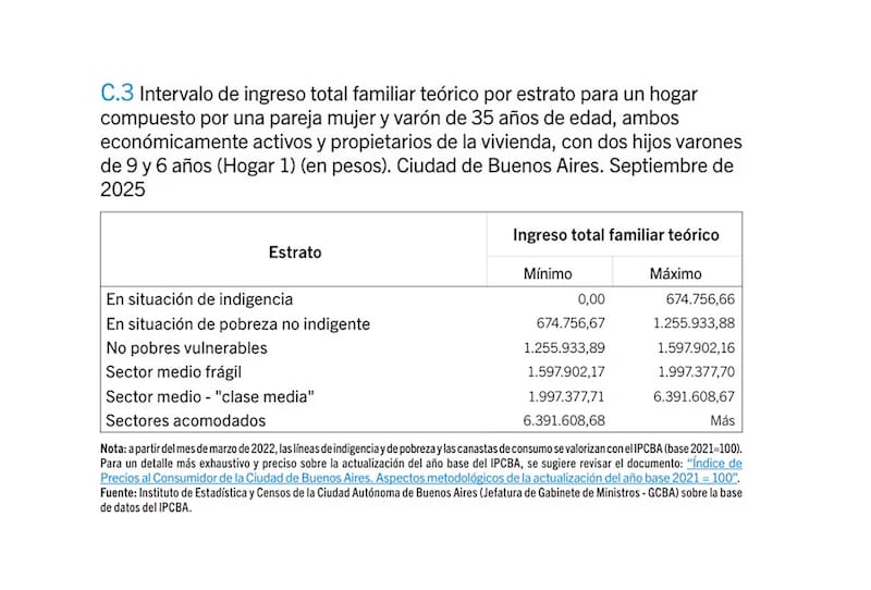 El Instituto de Estadística y Censos de la Ciudad de Buenos Aires (IDECBA) publicó un nuevo informe en donde detalló cuánto debe ganar una familia para ser considerada del sector medio frágil, clase media y clase alta en la Ciudad.