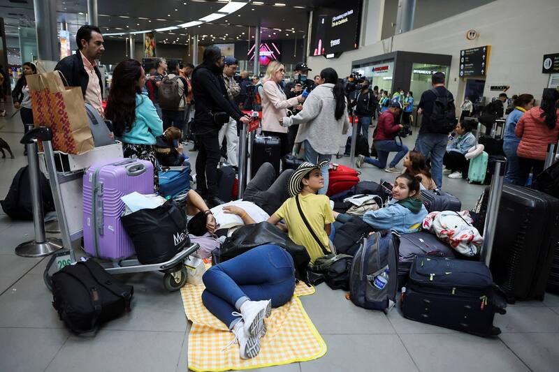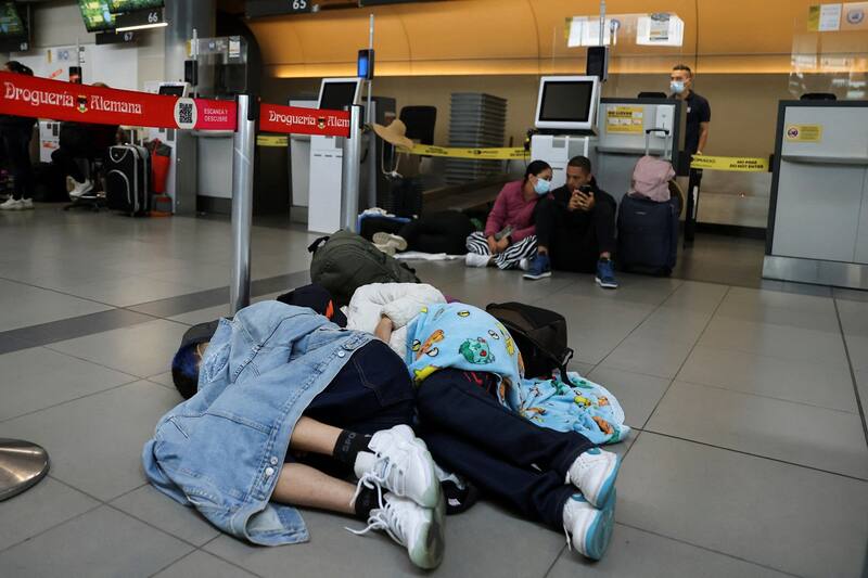 Segun reporta el diario El Espectador, de Colombia, los pasajeros se encuentran sentados en el suelo con niños, mascotas y sus pertenencias, en medio de manifestaciones de trabajadores en las inmediaciones del Aeropuerto Internacional El Dorado, desde la madrugada de este martes 28 de febrero.
