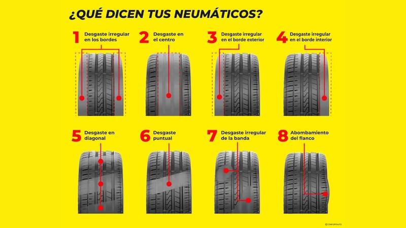 - Evidencia de desgaste irregular en la banda de rodadura.