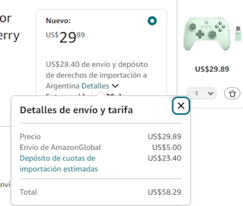 En muchos casos, el costo estimado por Amazon para los gastos de Aduana son excesivos y hacen que el precio final del producto se duplique en el carrito. Sin embargo, los impuestos reales luego pueden ser inferiores. En ese caso, el sitio de e-commerce devolverá la diferencia.