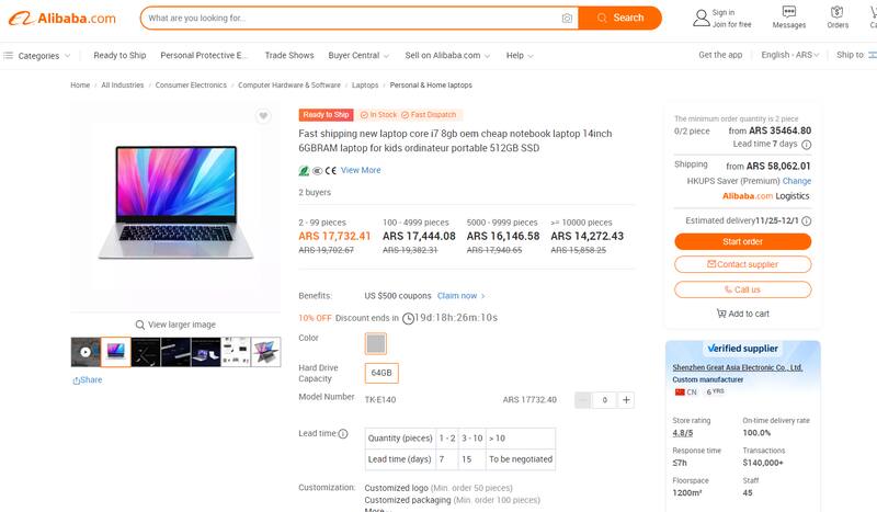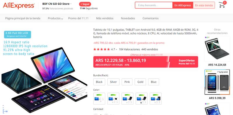 Por otro lado, en AliExpress se ofrece una tablet con sistema operativo Android con 4GB de RAM y 64GB de almacenamiento con un 50% de descuento y un precio de $ 12.000 aproximadamente.
