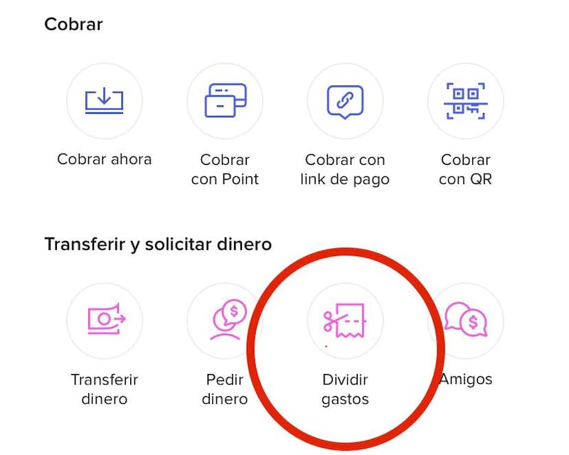 - En la sección de "transferir y solicitar dinero" apretar en "dividir gastos".