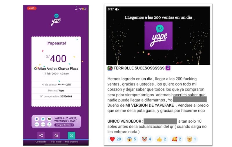 El "truco" consiste en que alguien llega a un local y paga su consumo con una app falsa que simula -usualmente, con gran detalle visual- ser la alguna de las billeteras más populares. El vendedor cree que se le ha realizado un pago o transferencia y ahí se concreta el engaño.