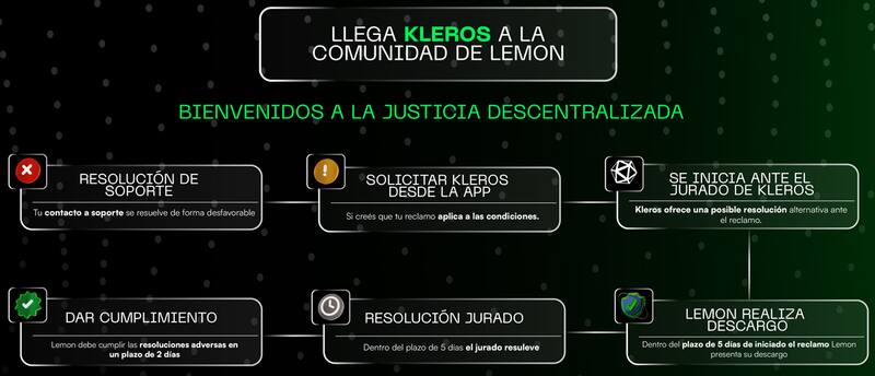 Gracias a esta integración, si el usuario recibe una respuesta desfavorable por parte de Lemon, podrá iniciar un reclamo desde la app adjuntando audios, fotos y videos, para que sean evaluados por un tribunal de justicia descentralizada y obtener una resolución acorde a las políticas de interpretación de disputas digitales en un lapso de 4 a 10 días.