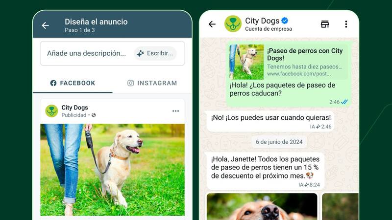 Además, la IA facilitará a los emprendedores en la creación de anuncios en Facebook e Instagram, generando la pieza más adecuada para llegar al público más pertinente. De esta manera, el usuario podrá iniciar una conversación por WhatsApp con el negocio desde una publicidad.