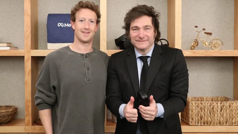El presidente argentino, Javier Milei, se presentó este martes en el evento "Meta Day Arlgentina", organizado por la compañía matriz de Facebook, WhatsApp e Instagram. En este contexto, el CEO de la empresa, Mark Zuckerberg, le envió un mensaje.
