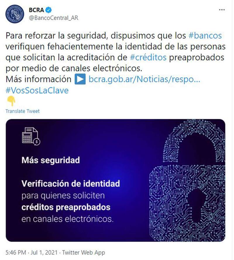 El 1° de julio el Banco Central (BCRA) reforzó las medidas de seguridad que deberán tomar las entidades financieras a la hora de otorgar estos préstamos preacordados a través de canales electrónicos, una de las principales vías de las que se aprovechaban criminales informáticos. A partir de ahora, los bancos deberán verificar fehacientemente -ya sea a través de llamado telefónico, reconocimiento facial o cualquier otra técnica de identificación positiva- que efectivamente es el cliente quien está solicitando el préstamo que la entidad le tiene asignado de acuerdo a su categoría crediticia.