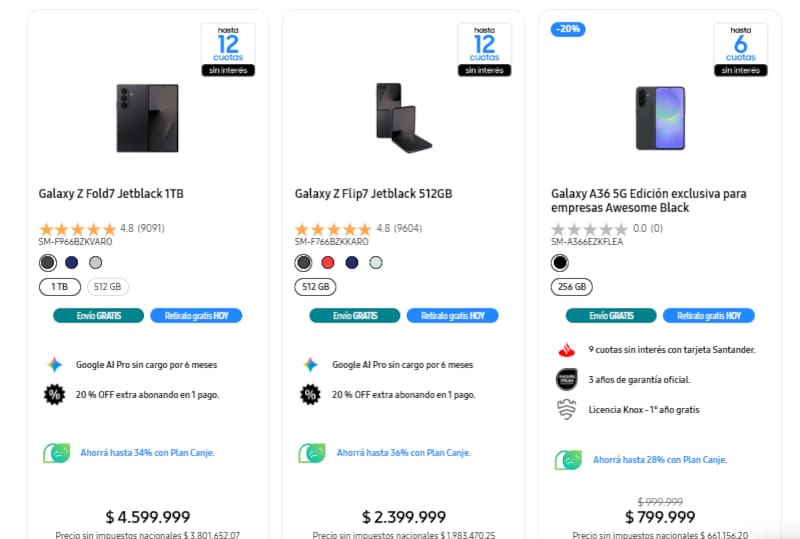 - Galaxy Z Flip FE (256GB, Black): $ 1.619.999. Hasta 33% de ahorro.