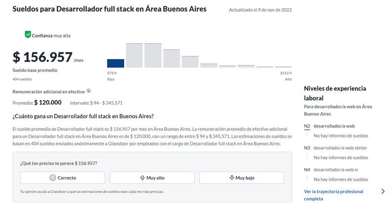 Por ejemplo, un desarrollador full stack cobra unos $ 150.000 en promedio según el portal especializado Glassdoor, mientras que también recibe un adicional de hasta $ 120.000.