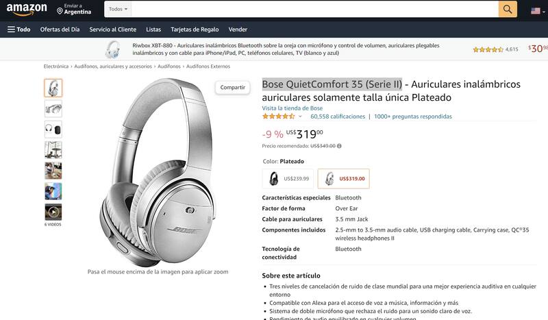 Bose QuietComfort 35 (Serie II) por u$s 319