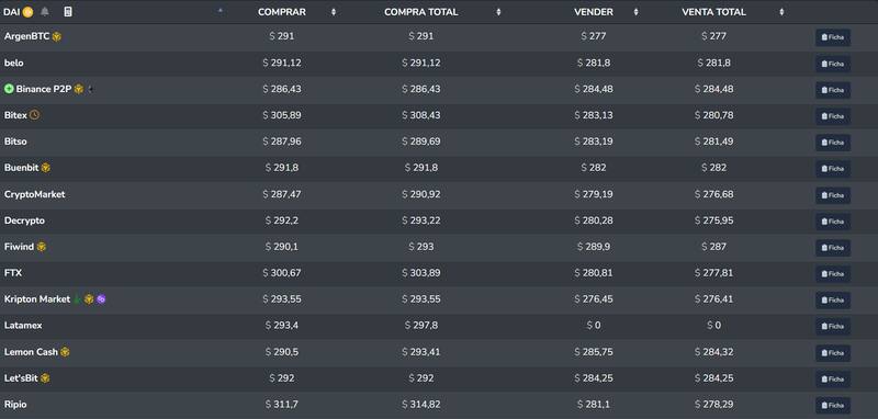 El precio de la stablecoin DAI se está manejando hoy en el país entre $ 291 y $ 311 para la compra y $ 281 y $ 277 para la venta.