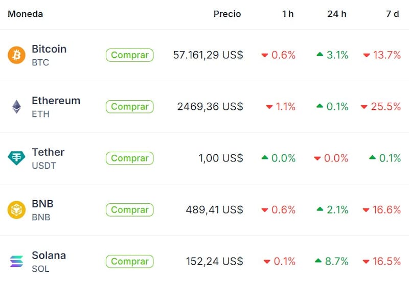 Por otro lado, el resto de las altcoins repuntan y también se mantienen al alza. Aunque, a pesar de un fuerte descenso en su cotización, Solana (SOL) es la moneda digital que más creció en las últimas 24 horas (8,7%).