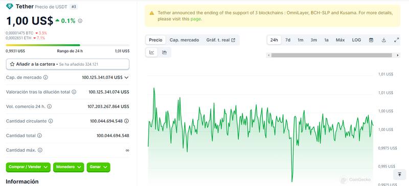 En concreto, estamos hablando de USDT (Tether), la stablecoin más famosa del mercado. Se trata de una criptomoneda especialmente diseñada para minimizar la volatilidad mediante la vinculación con el dólar; en tanto, cuenta con una reserva que respalda un emparejamiento 1:1 con la moneda estadounidense.