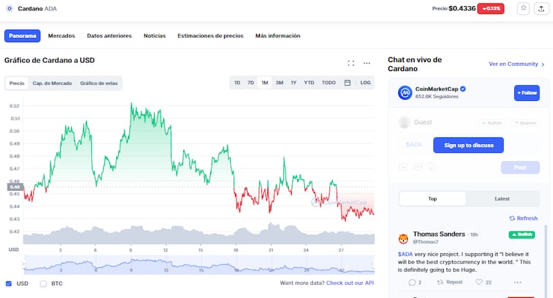 En el último mes, la criptomoneda vio altos y bajos constantes, con a su punto máximo en los u$s 0,5 y su cotización a día de hoy en los u$s 0,43 -mientras que también llegó a valer menos-.