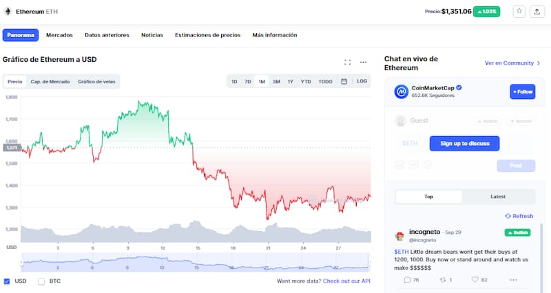 En segundo lugar está Ethereum (ETH), una criptomoneda que viene de perder gran parte de su valor tras pasar de un sistema Proof of Work (PoW) a uno Proof of Stake (PoS) por medio de The Merge.