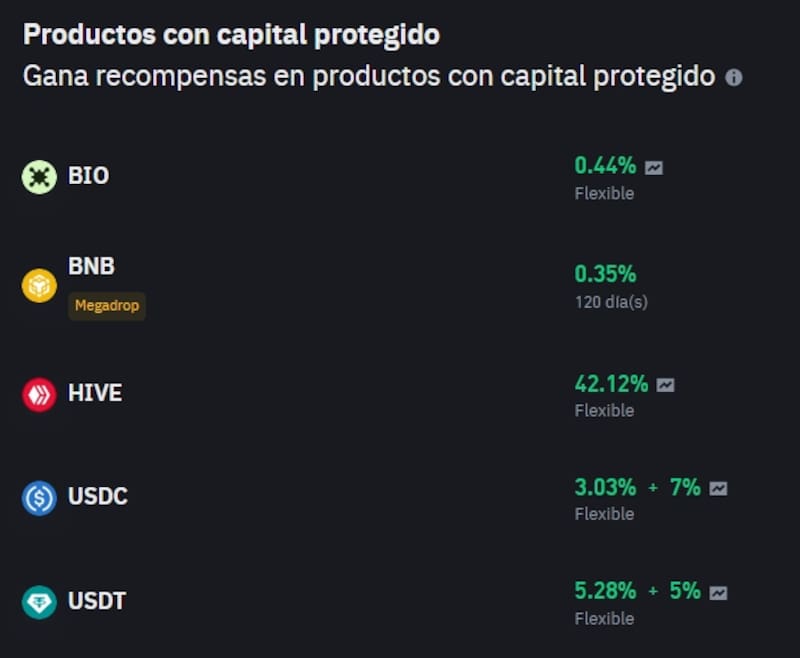 Se debe considerar que los rendimientos no son automáticos; es decir, hay que activar una función específica para hacer crecer el saldo en cuenta y elegir qué criptomoneda se desea poner a rendir (para generar rendimientos en la misma moneda).