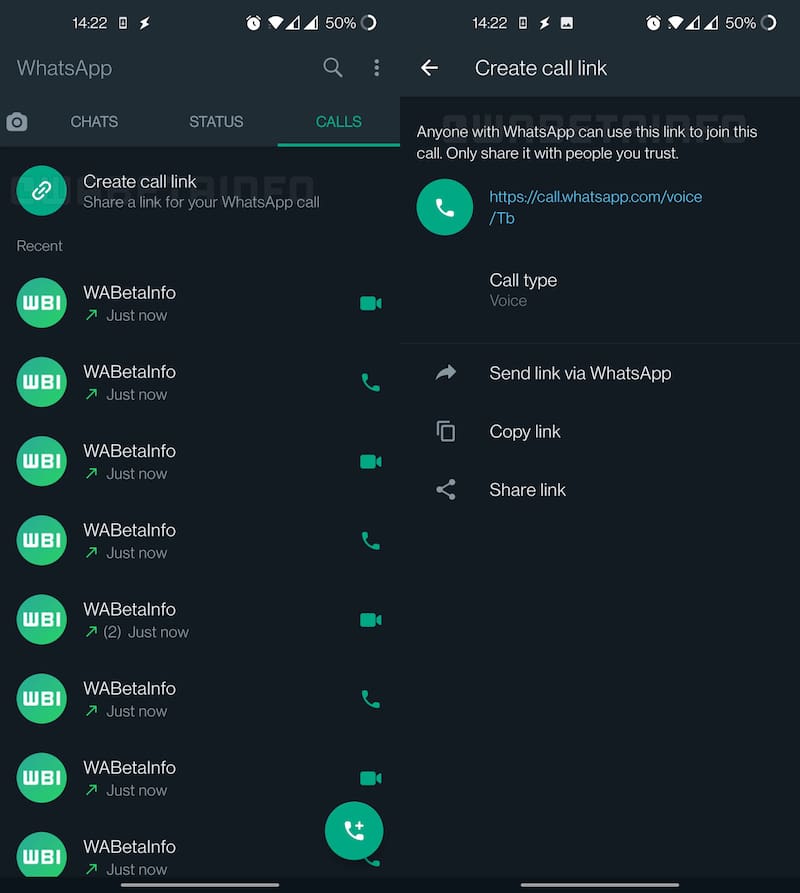 La imagen que publicó WABetaInfo en sus redes demuestra cómo funciona la nueva herramienta. Basta con dirigirse a la pestaña de llamadas para verificar si la posibilidad de crear enlaces está habilitada en tu cuenta de WhatsApp.