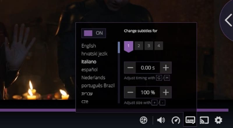 - Para agregar subtítulos se debe pausar el video, seleccionar el ícono y elegir el idioma.