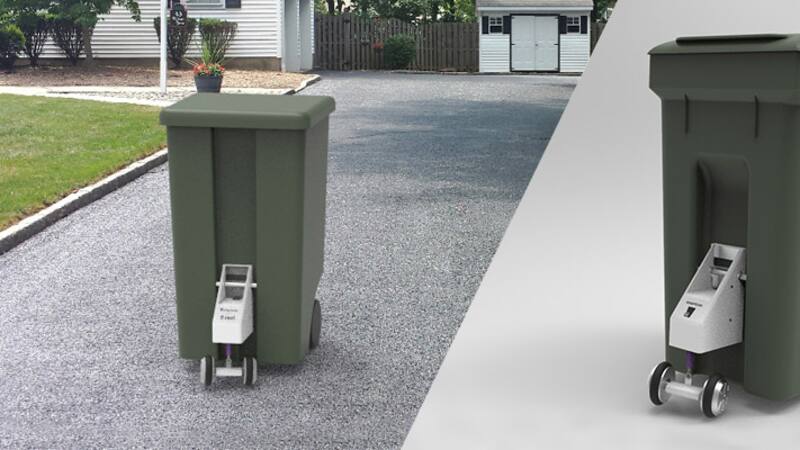Consiste en unas ruedas apuntaladas por un motor que se acoplan a los recipientes para la basura compatibles con los modelos utilizados por los recolectores en los Estados Unidos.