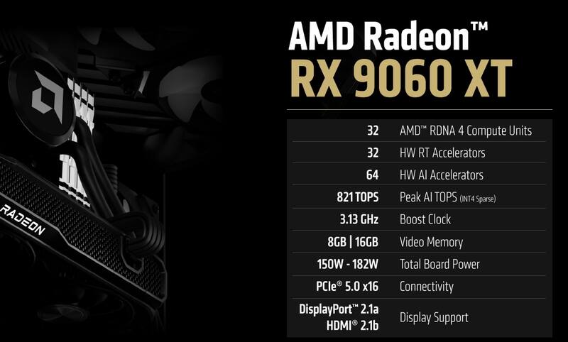 Se espera que las tarjetas gráficas AMD Radeon RX 9060 XT estén disponibles a través de socios fabricantes líderes, incluyendo Acer, ASRock, ASUS, Gigabyte, PowerColor, Sapphire, Vastarmor, XFX y Yeston, a partir de finales de este año. La AMD Radeon RX 9060 XT 8GB tiene un precio sugerido de u$s 299, mientras que la AMD Radeon RX 9060 XT 16GB tiene un precio sugerido de u$s 349.