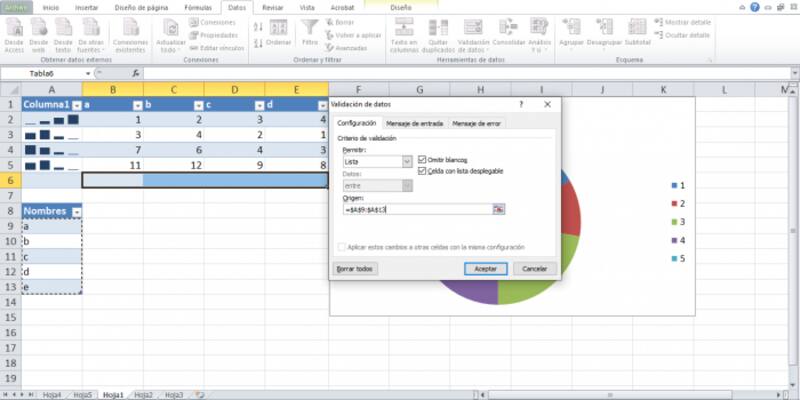 Una vez que se usan las tablas de forma correcta se puede pasar al uso de la herramienta de validación de datos, la cual permite asegurar que los datos a usar están bien escritos en todos los casos.