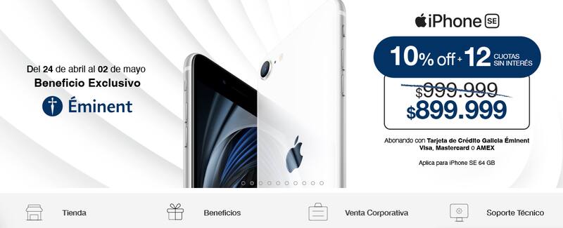 Los clientes de Galicia podrán disfrutar de un 10% de descuento y hasta 12 cuotas sin interés para la compra de un iPhone SE 256; un modelo que salió al mercado en 2022 y que ronda el millón de pesos en MacStation.