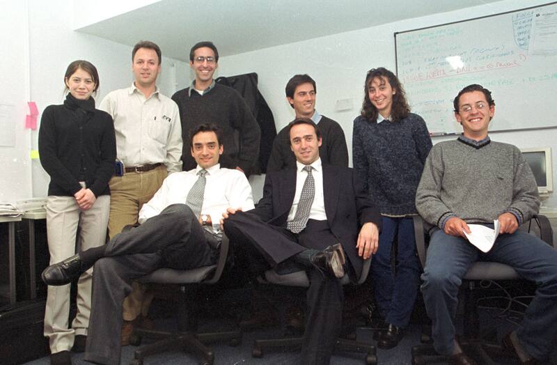 Año 1999. Hernan Kazah, Marcos Galperin, y equipo.