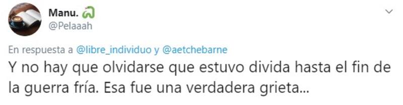 Al posteo lo acompaña un cuadro en el que puede observarse el recorrido de dos líneas de tiempo, de las cuáles una representa a la Argentina y otra al país germano.