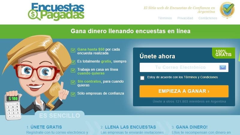 El sitio Encuestaspagadas.org tiene un formato similar y ofrece hasta $ 50 por cada encuesta realizada.