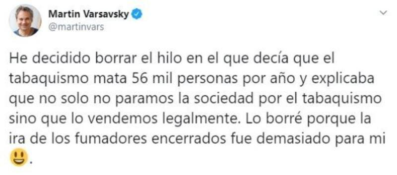 El propio Varsavsky explicó la decidió de borrar el polémico hilo en otra publicación que, a diferencia de lo que pretendido, también generó polémica y una rápida repercusión en la red de microblogging.