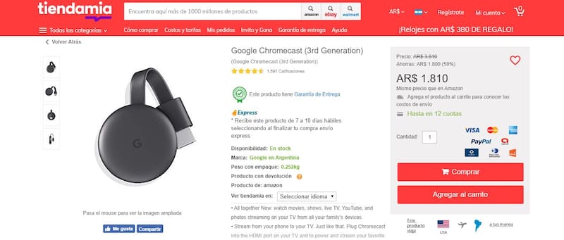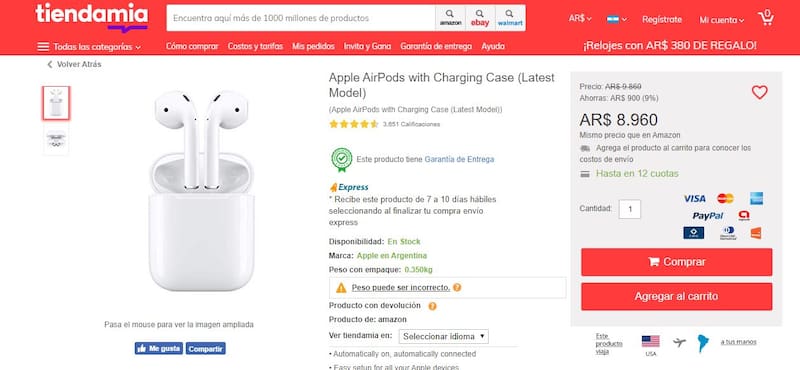 Hasta el momento esta tienda online es la única que permite recibir a domicilio por Correo Argentino productos de Amazon, eBay y Walmart US sin pagar impuestos aduaneros. Además, brindan toda la información necesaria para que el usuario pueda realizar con éxito el Aviso de Compra, la Declaración Simplificada de Envíos Postales Internacionales y el pago del VEP, con un costo fijo de $ 140.