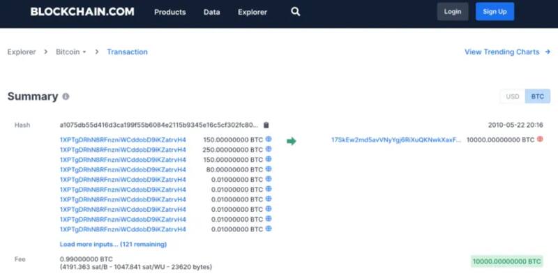 Se puede traducir como "Pagaré 10.000 bitcoins por un par de pizzas... Tal vez 2 grandes, así me quedan algunas porciones para el día siguiente. Me gusta dejar pizza para picar después. Pueden hacer la pizza ustedes mismos y traerla a mi casa o pedirla en una pizzería, pero lo que busco es que me entreguen alimentos a cambio de bitcoins, que tenga que pedirlos o prepararlos yo mismo, algo así como pedir un 'desayuno' en un hotel o algo así, y te traen algo de comer y estás feliz." En 2010, BTC 10.000 equivalían a unos US$ 41, un precio algo elevado para dos pizzas, que costaban USD 25 en la famosa cadena de pizzerías Papa John´s. De todas maneras, Hanyecz solo quería hacer el intercambio de alimentos por bitcoins y fijo la suma en un número redondo: 10.000 bitcoins.