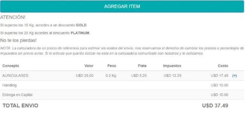 Mientras que con el correo, el precio final sería de $ 152.000, ya que se debe sumar el precio excendente por sobre el valor permitido sin arancel más el shipping y $ 200 de entrega del Correo. La diferencia es de más de $ 40.000. Los usuarios de la plataforma pueden usar la calculadora de precios del sitio para saber cuánto terminarían pagando por los productos del exterior.
