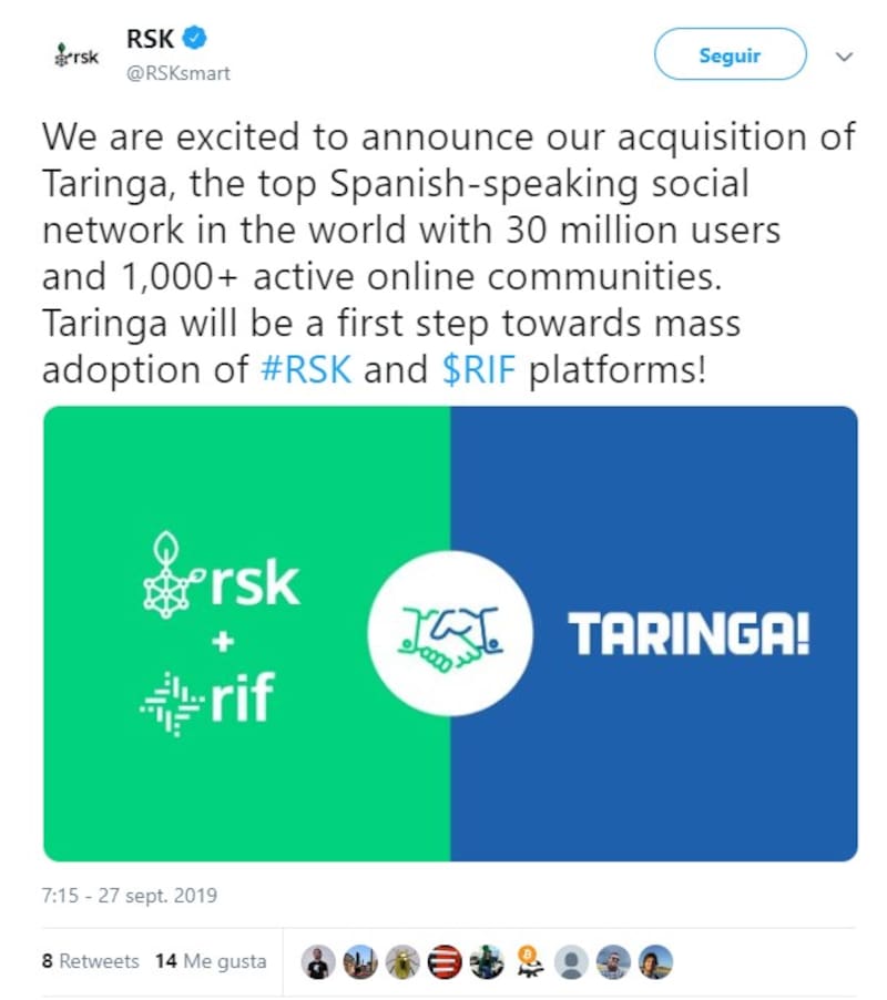 A través de esta adquisición, "IOVLabs será capaz de probar y distribuir entre los usuarios de Taringa, nuevas infraestructuras descentralizadas y aplicaciones impulsadas por la plataforma RSK y el token RIF a gran escala", anunciaron desde la organización. "En conjunto con el equipo de Taringa, la compañía especializada en blockchain, creará productos y servicios de consumo innovadores para sus comunidades, utilizando la infraestructura descentralizada de RSK", agregaron.