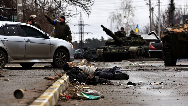 Las imágenes de cerca de 20 cadáveres con indumentarias civiles encontrados en una calle de Bucha - uno de ellos con las manos atadas en la espalda - dieron la vuelta al mundo y las autoridades ucranianas afirman que se trata de un "crimen de guerra" cometido por las tropas rusas.